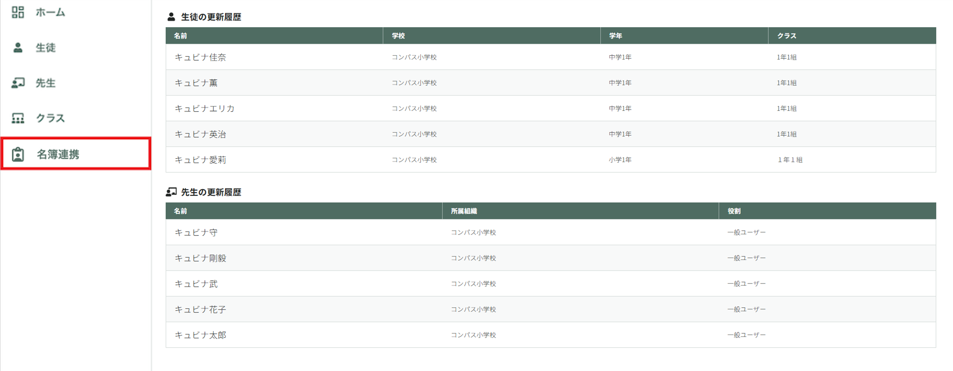 本記事は、キュビナマネージャー[アカウント管理]に、「名簿連携」メニューが表示されている自治体・学校が対象です。