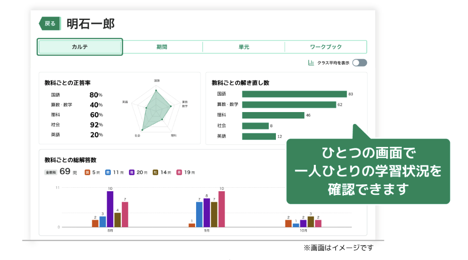 学習カルテ機能を追加、生徒の学習状況が見取りやすくなりました
