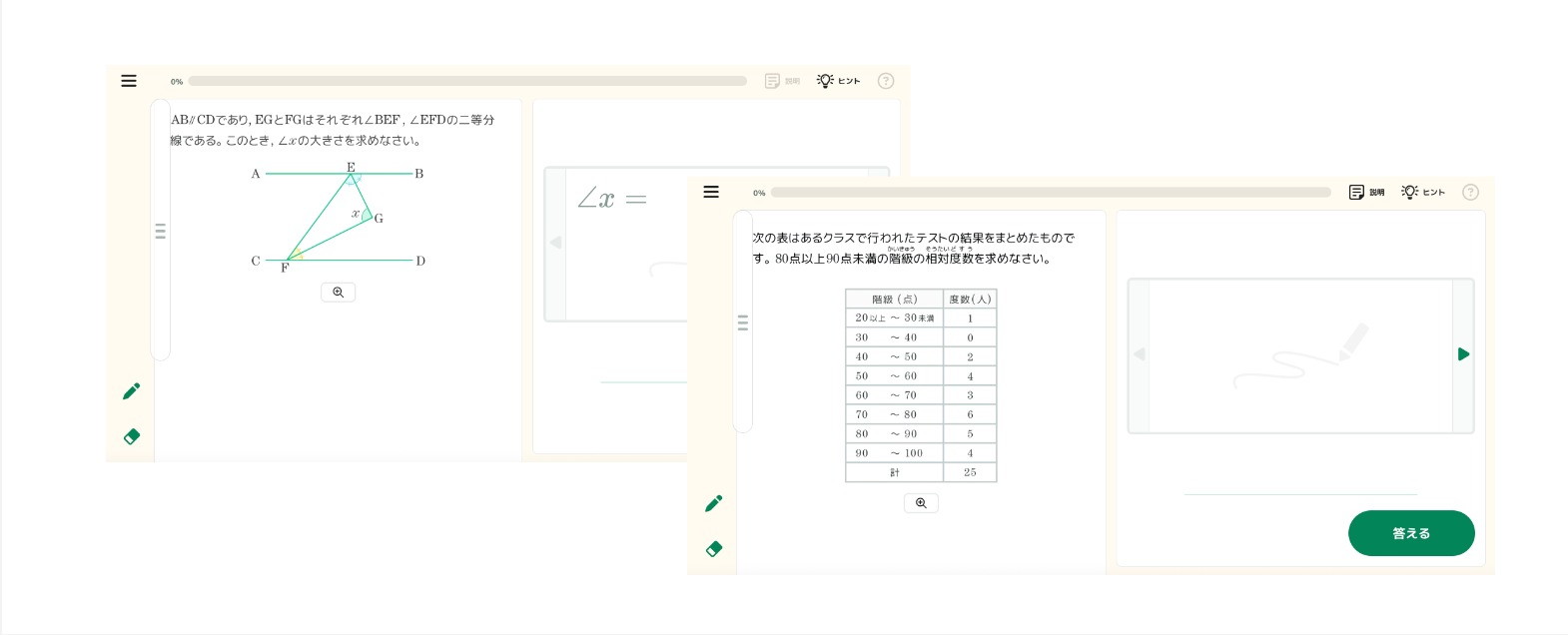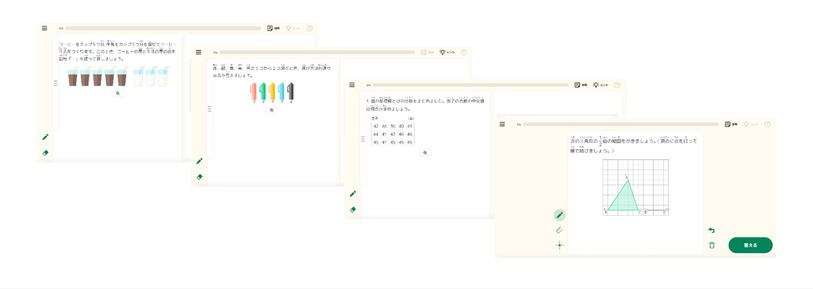 また、学年のまとめ問題をワークブックで配信したり、児童生徒の学習履歴を確認したりすることができます。