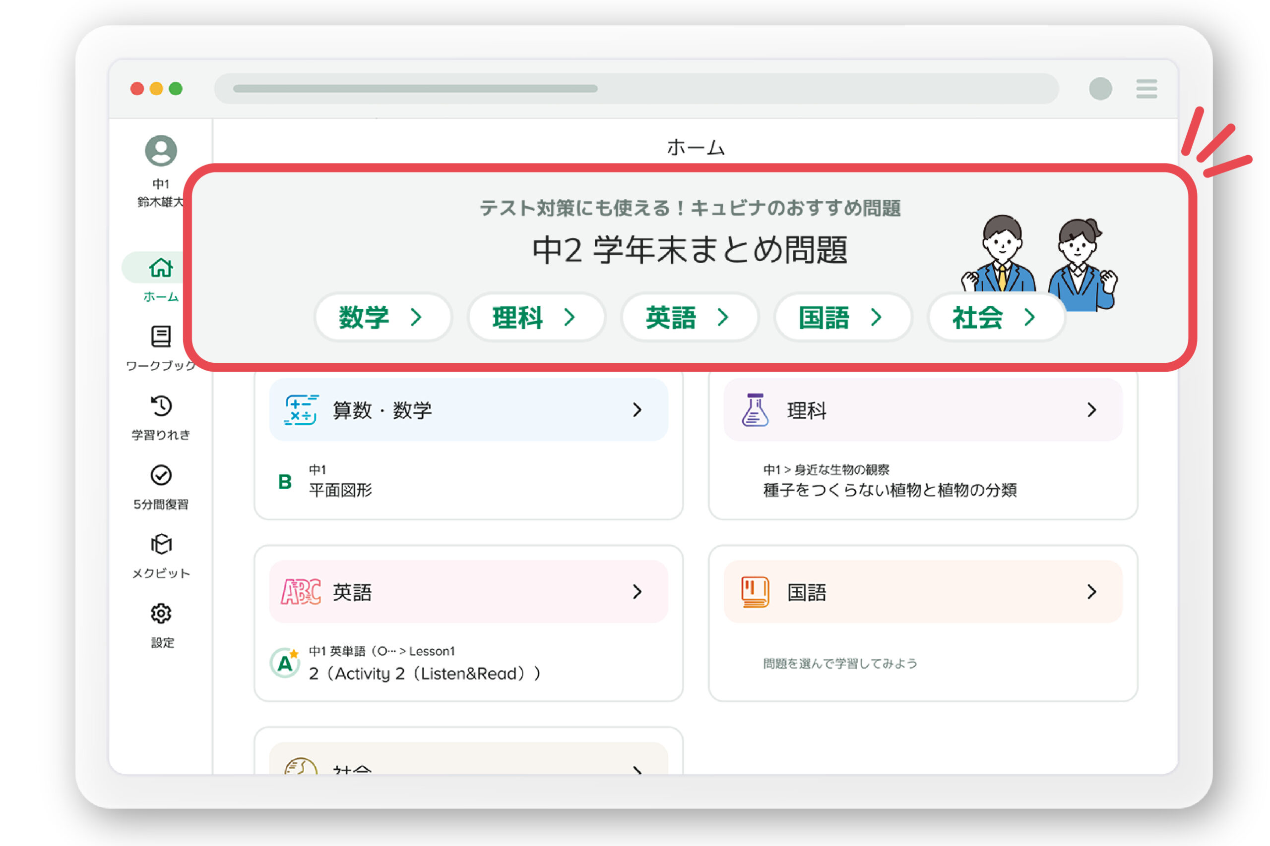 現在キュビナのホーム画面に表示されている「冬のまとめドリル」問題のバナーが学年のまとめ問題に変わります。
