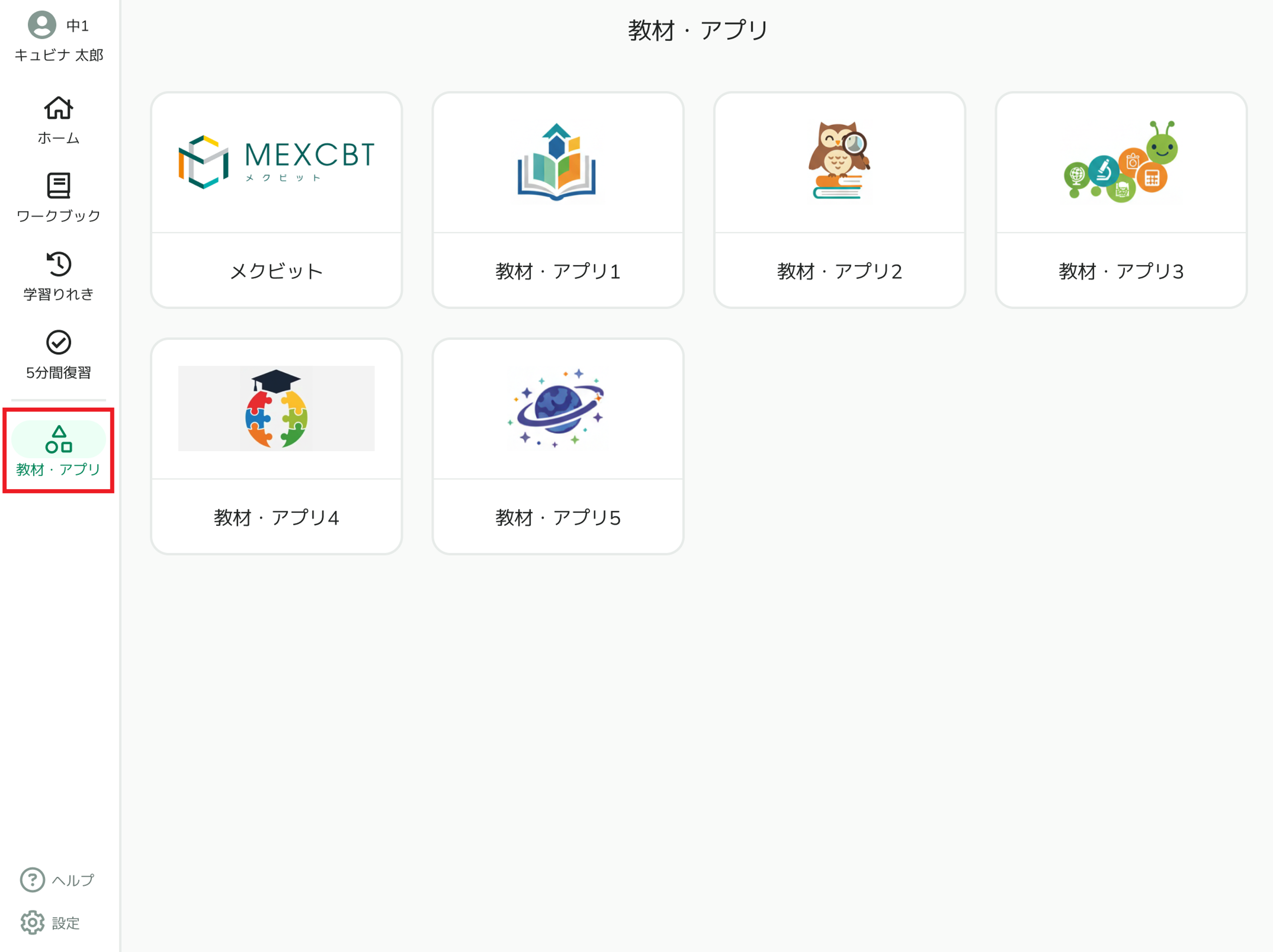 機能ボタンの名称を「メクビット」から「教材・アプリ」に変更しました。
